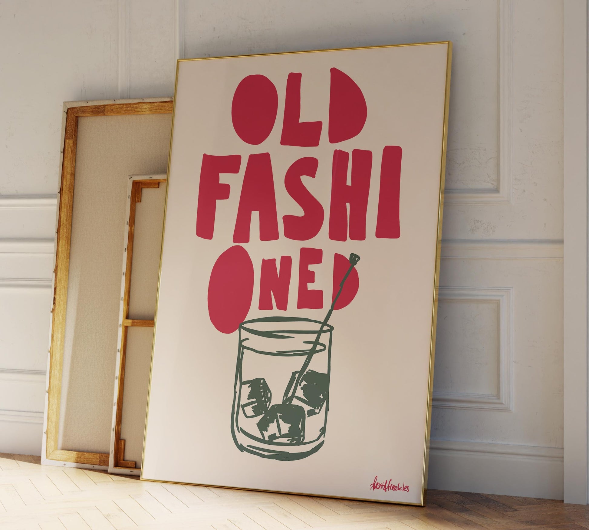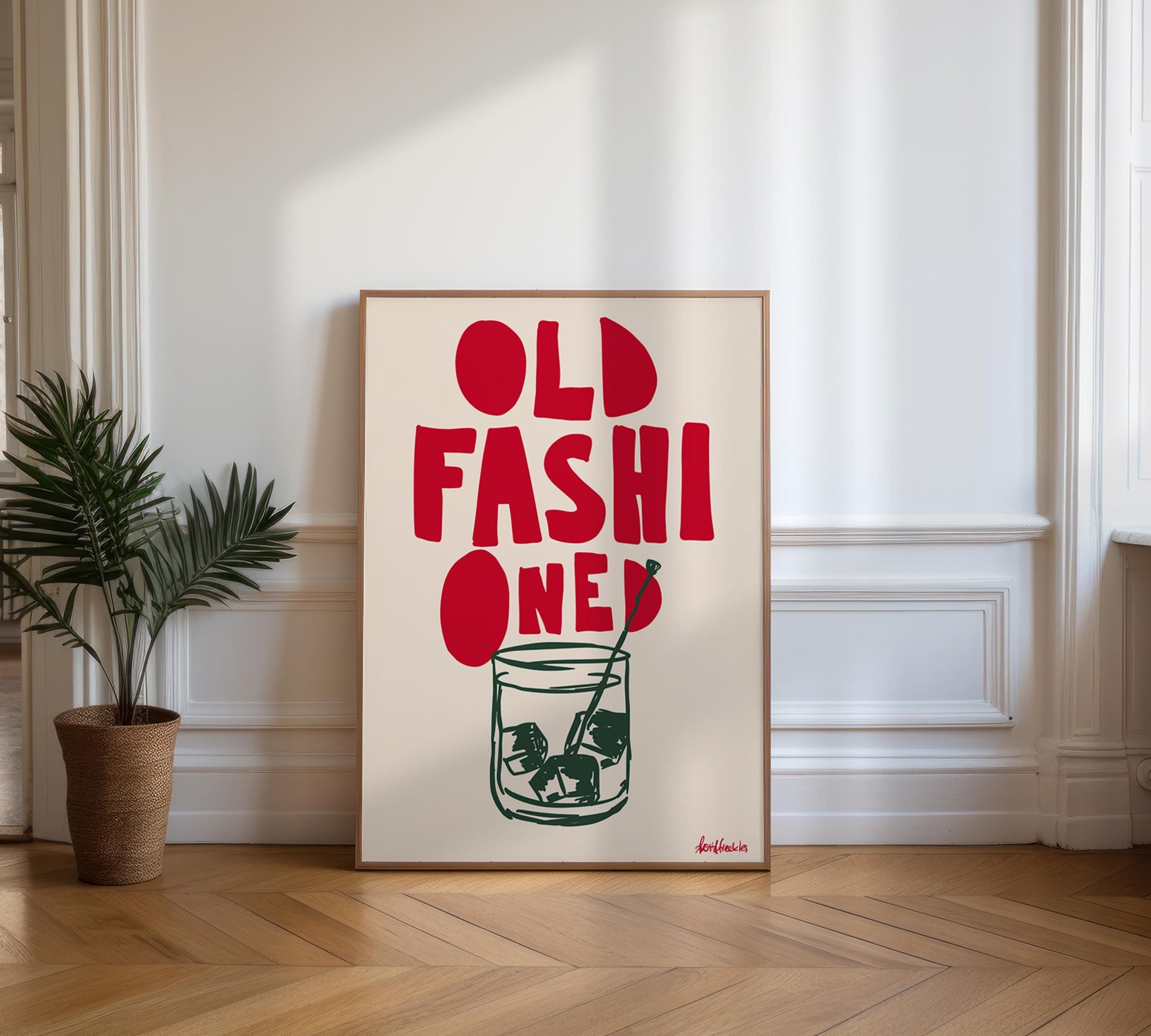 Old Fashioned Poster – Hand Drawn Whiskey Poster for Kitchen, Whisky Print for Bar or Party Room